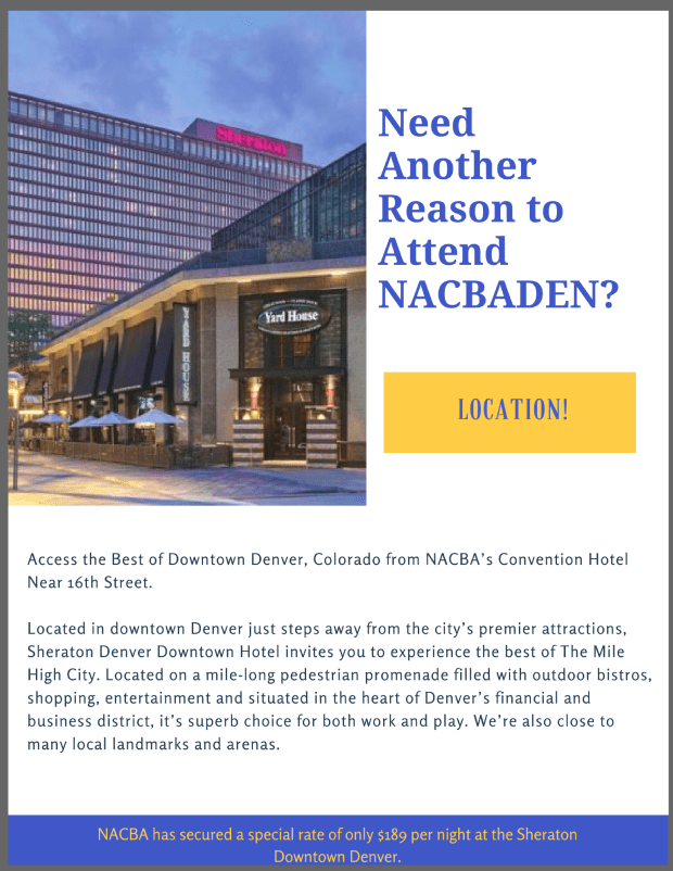 Get The Attention of NACBA Members! Become a Sponsor and/or Exhibitor at #NACBADEN